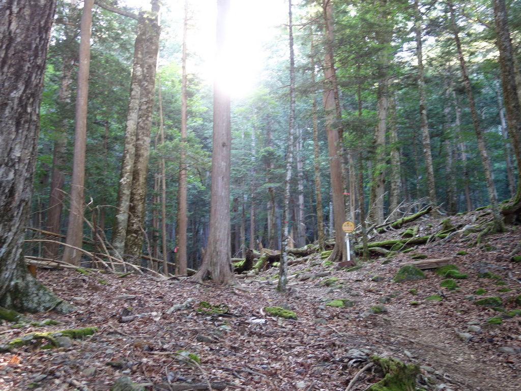 つづら折りの道が一段落すると、雰囲気のある樹林帯となります。